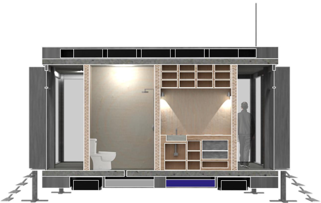 While positioned as a solution to the covid ‘zoom boom’ housing issue, the Nomadic can also serve as a temporary ADU or disaster relief shelter. The hydraulic foundation allows for the structure to be situated with no permanent foundation and the customizeable interior core allow for a variety of program to be housed within the unit.