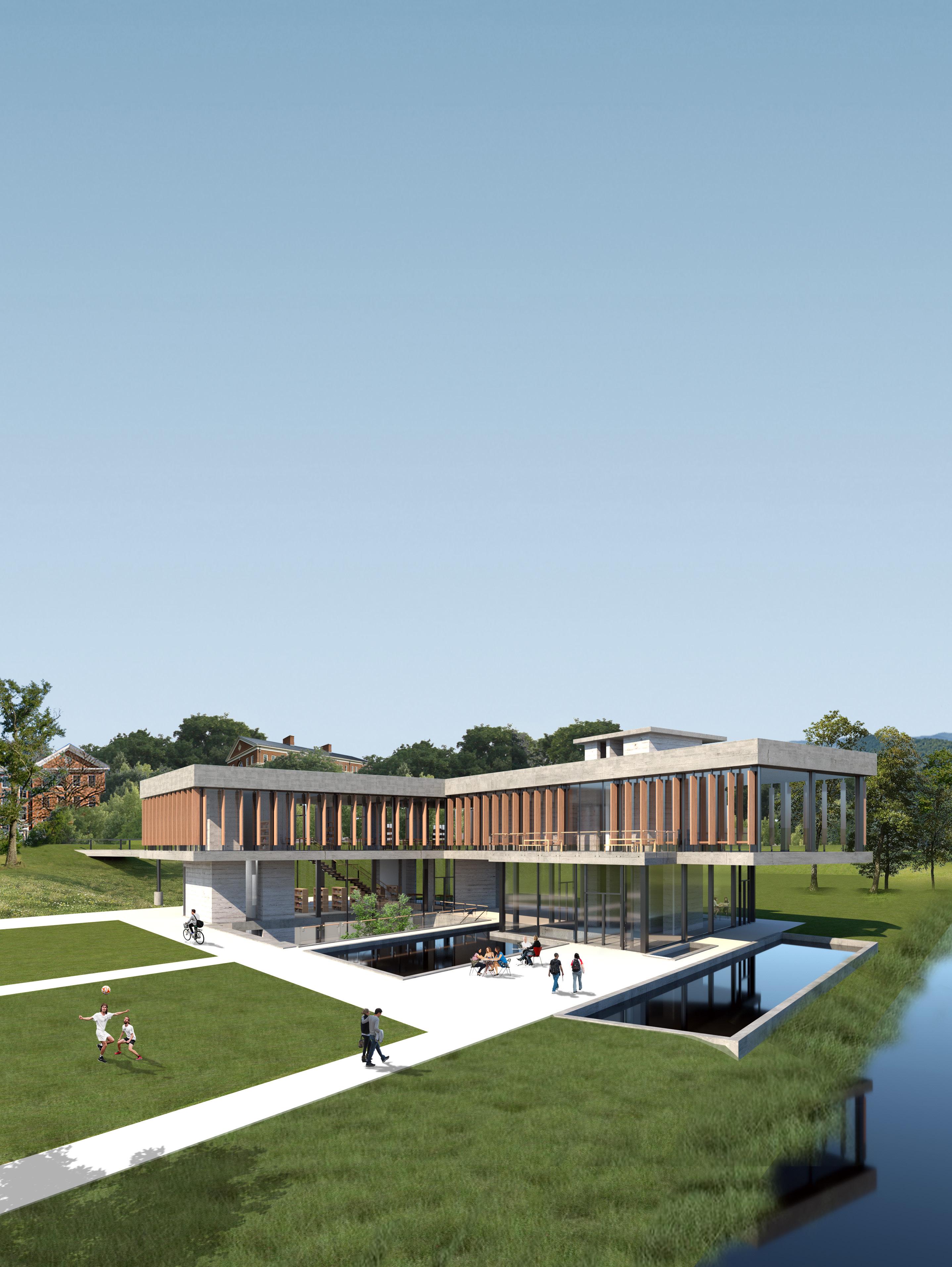 The existing site includes a parking lot, basketball courts, as well as the Dell pond. The site is located at the intersection of student housing, academical buildings, and Charlottesville neighborhoods.