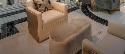 Left: The marble oor in Yasmina Makram’s Nile Jewel apartment is a subtle nod to the lotus ower