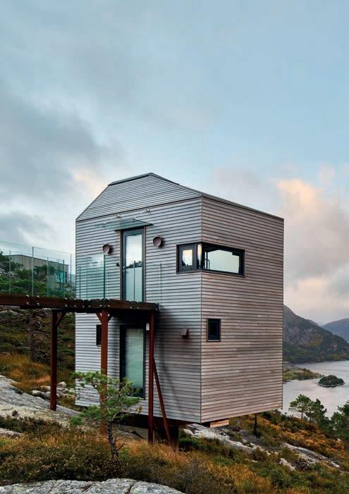 “There’s real sensitivity to the landscape that you see in both contemporary Nordic architecture and the past,” says author Dominic Bradbury, whose research took him to far- ung islands and archipelagos as well as the Scandinavian mainland. “There’s use of organic material and natural textures, even if the forms and composition are very modern.”