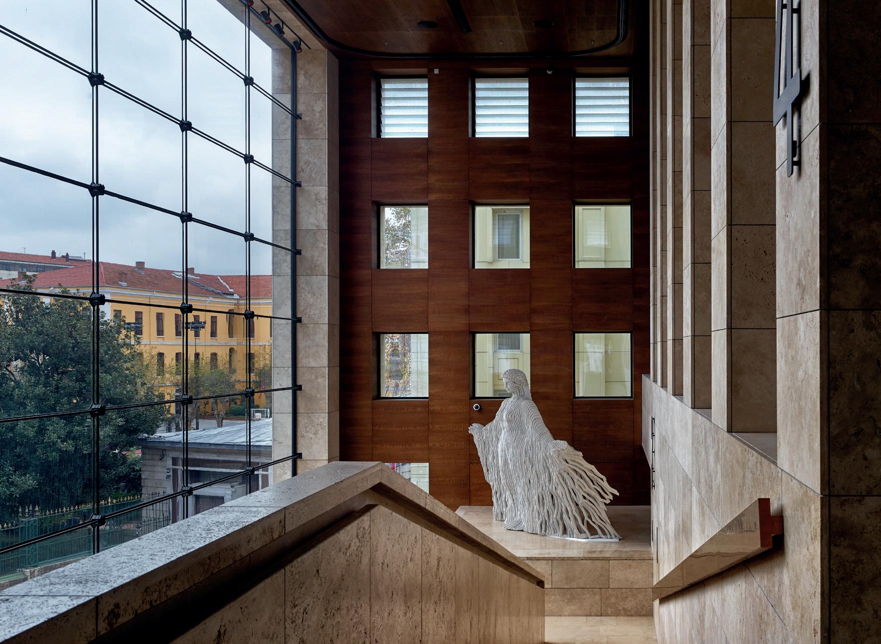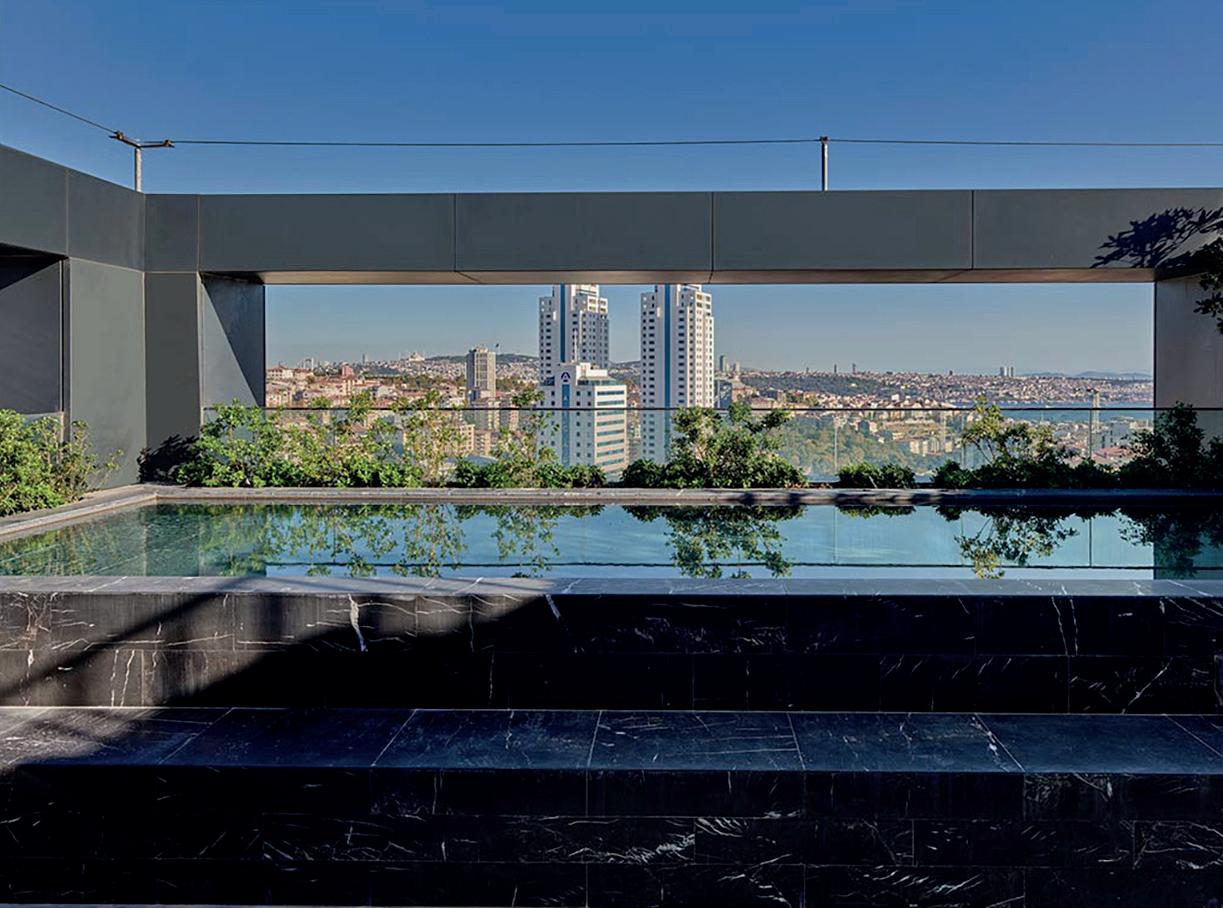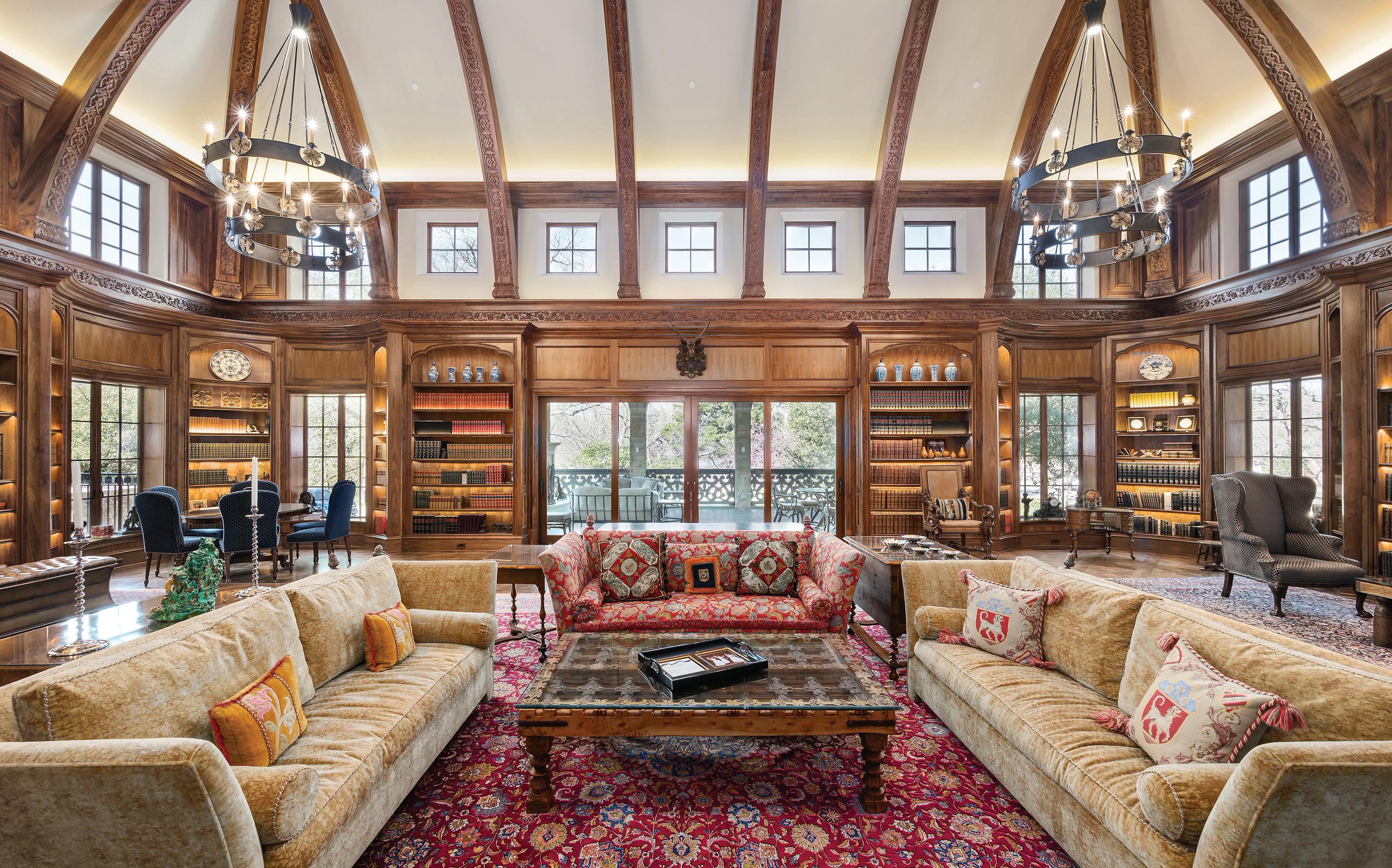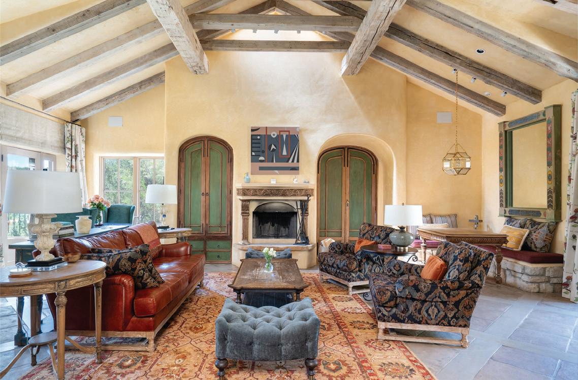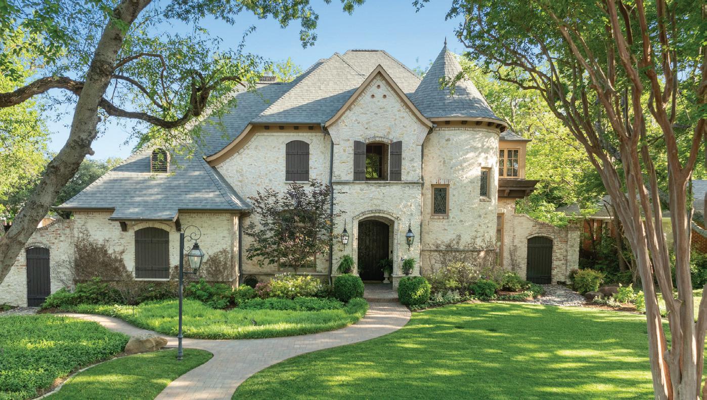 The refined retreat: Inside Dallas’ gated Place des Vosges — the exclusive 16-home enclave in the prestigious Turtle Creek area, on the edge of Highland Park — the luxuries within this ultra-elegant home include a two-story living room with a monumental 18thcentury fireplace from Jamb London and a James Turrell Skyspace installation under a turret roof that pivots open to the sky. For much more, see pages 60 and 61.