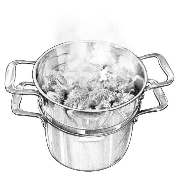 TRY IT: Add a halfinch of water to a pot and bring to a boil. Set veggies in water (or colander, if preferred). Cover tightly with lid and steam until tender, anywhere from 5 minutes (leafy greens) to 25 minutes (artichokes).