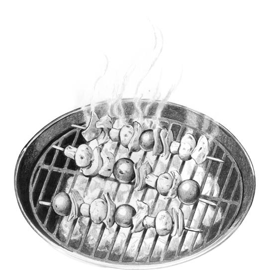 PRUÉBALO: Prepara vegetales a la parrilla usando pinchos para hacer brochetas. También puedes poner verduras cortadas en pedazos en una bolsa hecha de papel de aluminio y luego en la parrilla al lado de los demás alimentos que estás preparando. ¡Así es más eficiente y delicioso!
