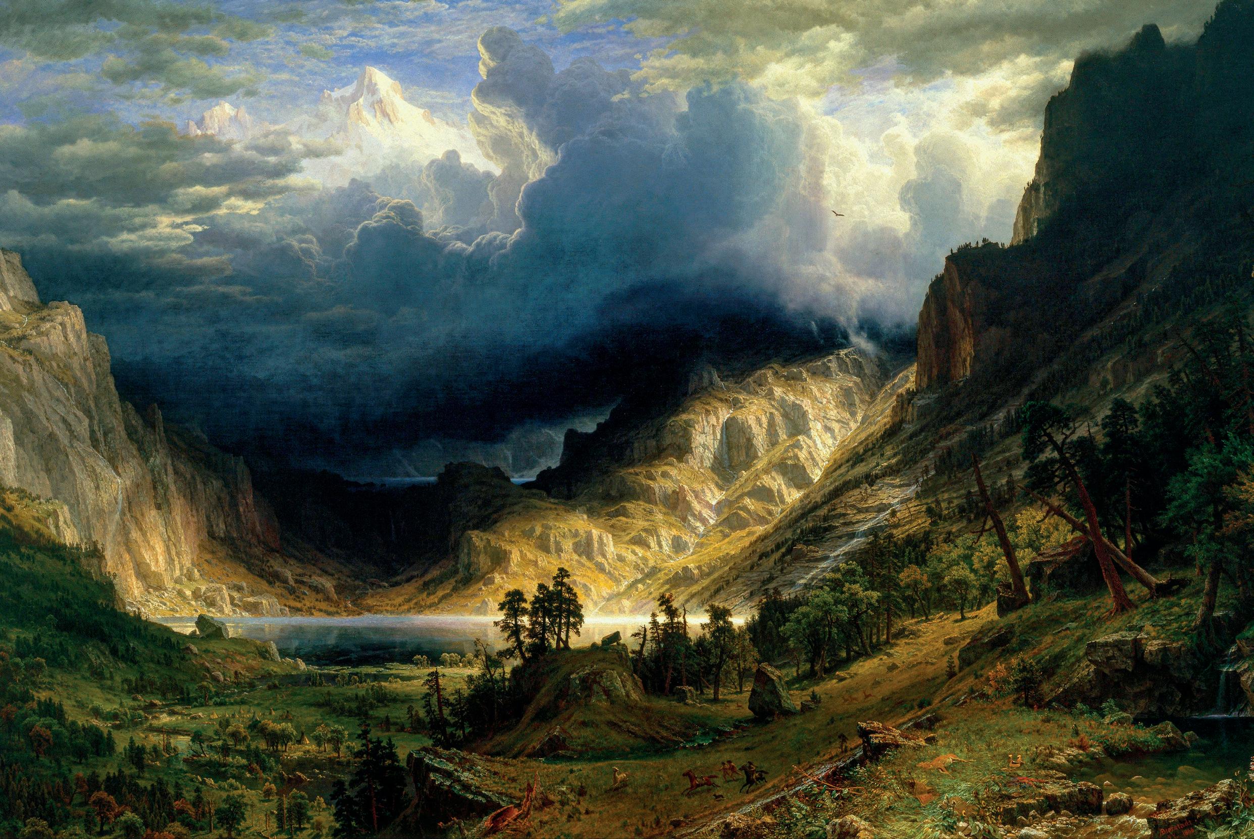 ABOVE “A Storm in the Rocky Mountains, Mt. Rosalie” by Albert Bierstadt, 1866. Oil on canvas. Brooklyn Museum, New York.