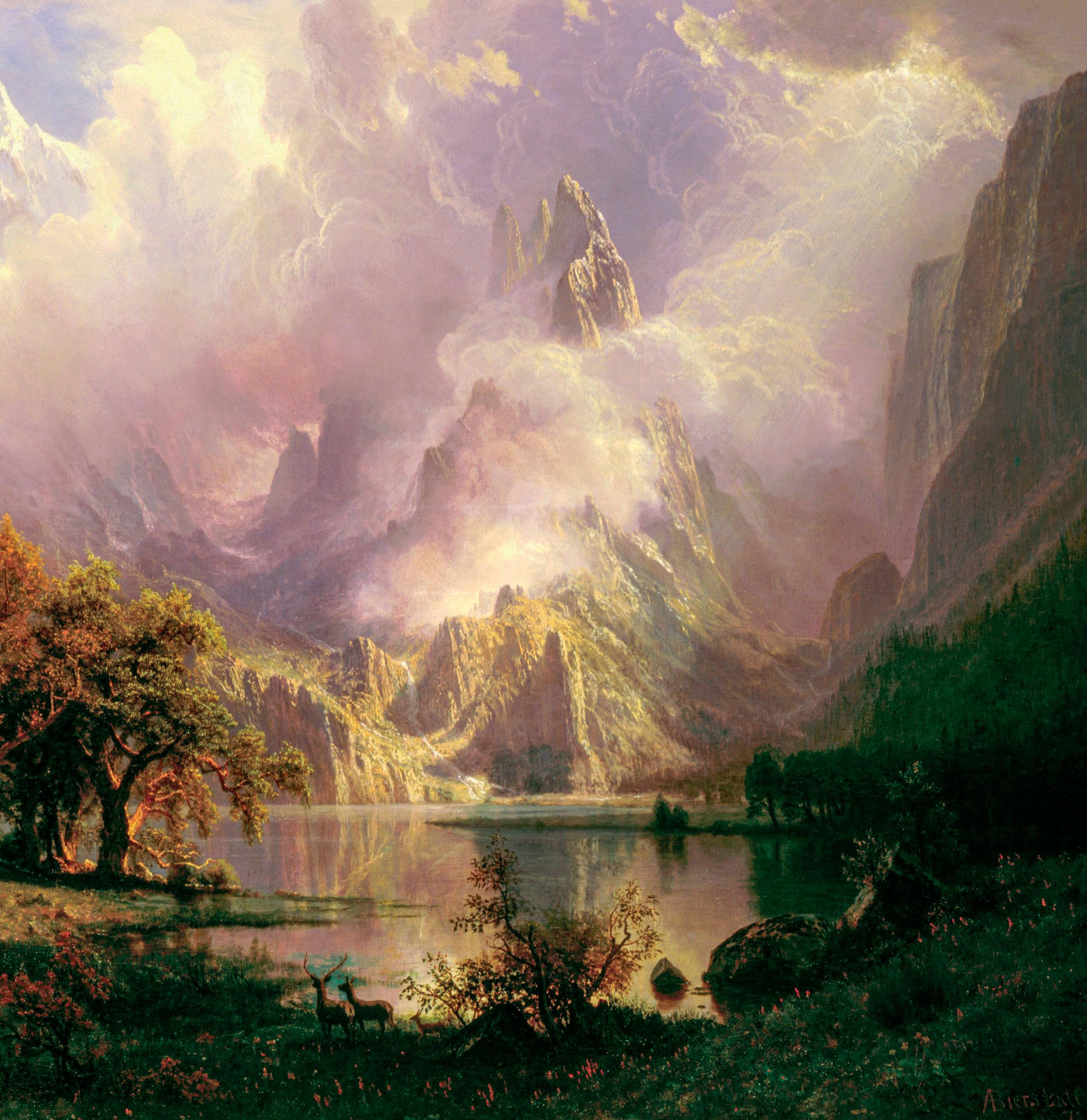 Hudson River School painter Albert Bierstadt offered viewers who would never peril the westward journey a window to the Rocky Mountains.