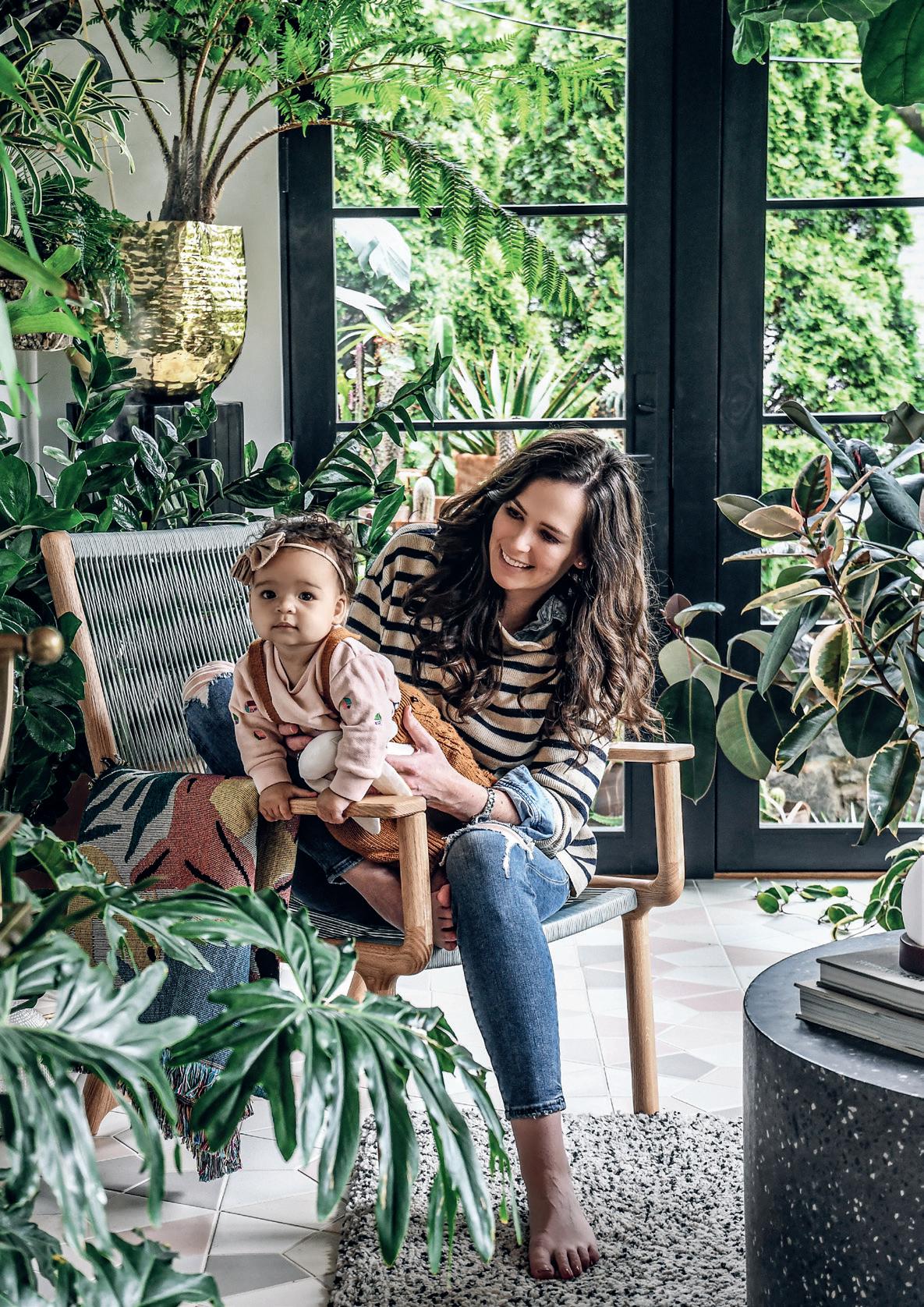 BELOW Carter’s wife, Fiona, and their daughter, Holland, enjoy a moment in the conservatoryinspired sunroom of their Baltimore home.