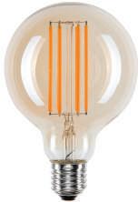• G125 Shaped like a round globe and fits regular light fittings with 8 pieces of 62mm filament LED. Amber coating.