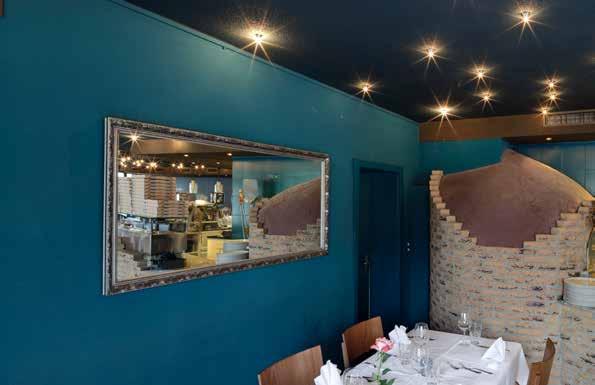 An den Wänden, den Abtrennungen und der Decke im Restaurantund im Bar-Bereich kam die Innendispersion Superlux 3000 zum Einsatz, die besonders für grössere, zusammenhängende Flächen, wie in diesem Fall, ideal geeignet ist.