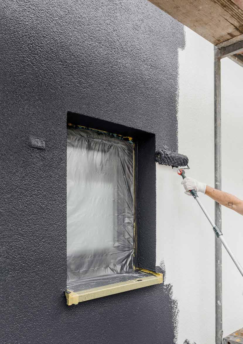 • schnell und effizient: kein Anmischen, weniger Reinigungsund Abdeckaufwand, leichterer Transport auf das Gerüst und schnellere Trocknung: mit Qju 30 % Zeit sparen.