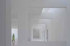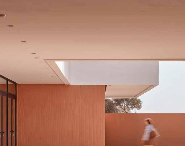 Diese Art von Innenhöfen soll zum einen als Orientierungs und Übergangspunkt sowie als Pufferzone zwischen den unterschiedlichen Nutzungen wie den einzelnen Lernbereichen der verschiedenen Altersgruppen dienen. Zum anderen agieren die offenen Höfe auch als Treffpunkt und Gemeinschaftsraum für soziale Interaktionen und liefern als eine Art klimaregulierende Räume Frischluft und Tageslicht für alle angrenzenden Bereiche. An einigen Stellen überdacht, bieten sie zudem gerade bei besonders intensiver Sonnenein strahlung eine angenehme, schattige Spiel fläche. „Neben dem Hofgedanken haben wir auch Bögen und schattige Gehwege integriert, die an die traditionellen Riads erinnern“, so Zineb Ajebbar. „Auch diese Elemente wurden mit klaren, modernen Linien neu interpretiert, um sicherzustellen, dass sie sowohl praktisch als auch symbolisch funktionieren und Räume schaffen, die die Schule mit ihren kulturellen Wurzeln verbinden und gleichzeitig eine moderne Lösung für Raumorganisation und Komfort bieten.“