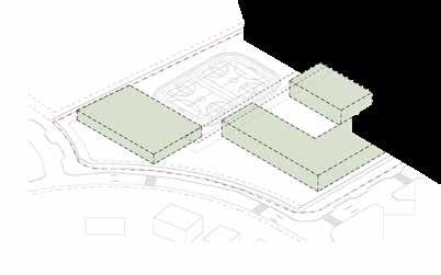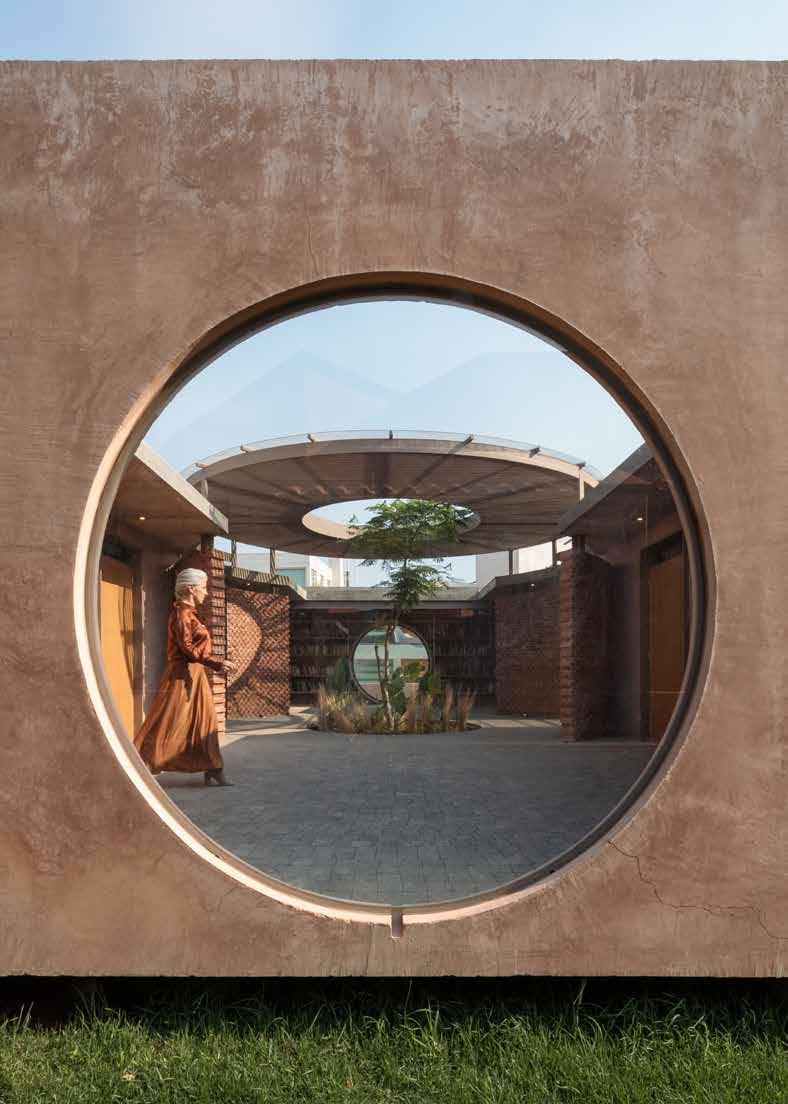 Die übergeordnete Gestaltungsstruktur des Campus basiert dabei auf der zweiphasigen Entwicklung und Errichtung der einzelnen Gebäude. In der ersten Phase wurden die Bauten im nördlichen Teil des Grundstücks er richtet. Sie bieten dem Kindergarten und der Grundschule im vorderen Bereich und den Verwaltungsbüros, der Cafeteria und dem Kulturzentrum im hinteren Teil Platz. Dies hat neben der Lage der Hauptstraße, der Tiefgarage und damit einem effizienten Fluss an Verkehr, Logistik sowie an Schülerund Besucherströmen den Vorteil, dass sich in der zweiten Phase (Abb. grüne Gebäude) die Erweiterung der Grundschule und Ergänzung mit der Sekundärschule unkompliziert im Süden entwickeln konnte. Auch die zentrale Einbettung der gemeinsamen Außensportplätze bot so die Möglichkeit, einen landschaftlich gestalteten Freiraum mit hoher Aufenthaltsqualität für das Projekt zu bilden. Darüber hinaus konnten die verantwortlichen Architekt/innen mit dieser phasenweisen Entwicklung dem engen Zeitplan des Projekts begegnen. Das war laut Zineb Ajebbar definitiv eine komplexe und herausfordernde Aufgabe. „Wir mussten innerhalb eines ehr geizigen Zeitfensters von einem Jahr die Planung, die Materialbeschaffung und den Bau durchführen“, erklärt sie. Gleichzeitig bestand dabei die hohe Motivation, zudem auf lokale Materialien, Handwerker/innen und traditionelle Methoden zurückzugreifen, weil dies dem Büro grundsätzlich ein wichtiges Anliegen ist.