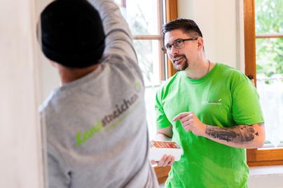 Um die Abnahmen auf den Baustellen kümmert sich weiterhin ein erfahrener Mitarbeiter. Fabian Bach ist bei „Dein Landstreicher“ der Handwerker mit dem Meisterbrief. Der 32-Jährige verbringt täglich Zeit auf den Baustellen, spricht mit seinen Mitarbeiterinnen und Mitarbeitern die Aufträge durch und zeigt ihnen neue Kniffe. Seine jungen Kolleginnen und Kollegen fahren derweil vor dem Firmengebäude vor, um Material für den nächsten Auftrag einzuladen. Lisa-Marie Nicolay holt im Lager mehrere Farbeimer aus dem Regal, wuchtet sie