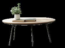 Die Platte aus hellem Holz bringt noch mehr Wärme und Authentizität in den biophilen Wohnstil. Die schwarzen Metallbeine setzen klare Akzente, das Holz unterstreicht die natürliche Leichtigkeit des Raums.