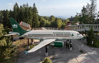 Mitten im Wald erhebt sich der „Bayerwald Flieger“, ein ausrangierter Airbus A319. Aber nicht am Himmel, sondern auf Stützen montiert im Waldwipfelweg Sankt Englmar, wo er die Besucher/-innen als VR-Kino begeistert.