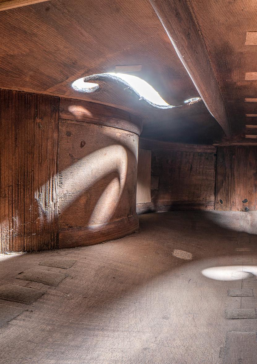 Was auf den ersten Blick wie ein Schiffsbauch anmutet, ist das Innere eines Instruments: Der Fotograf und ehemalige Cellist Charles Brooks schaut hier mit seiner Kamera in das verborgene Innenleben eines 240 Jahre alten Cellos des englischen Geigenbauers Lockey Hill. Werkzeugspuren, feine Risse und eingesetztes Ersatzholz erzählen von Klängen, die diesen Raum seit Generationen erfüllen. Mit 432 überlagerten Makroaufnahmen macht Brooks die verborgenen Strukturen sichtbar. In seiner Serie „Architecture in Music“ verwandelt er historische Instrumente in hölzerne Kathedralen und schimmernde Tunnel.