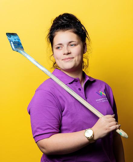 dann auf die Ladefläche eines Transporters. Die 21-Jährige ist in ihrem zweiten Ausbildungsjahr. „Ich durfte schon viele Räume eigenständig streichen“, sagt sie. „Das ist für mich eine große Wertschätzung.“