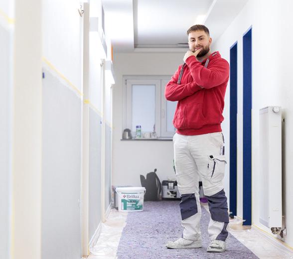 Im Malerhandwerk gibt es so viele Techniken, mit denen ich einen Raum kreativ gestalten kann. Unser Chef gibt uns die Möglichkeit, Lehrgänge zu besuchen, um dort unter anderem Sondertechniken zu erlernen. Das bringt mich weiter, hilft aber auch der Firma. Das Gelernte behalte ich ja nicht für mich, sondern gebe es auch an die Kollegen weiter.