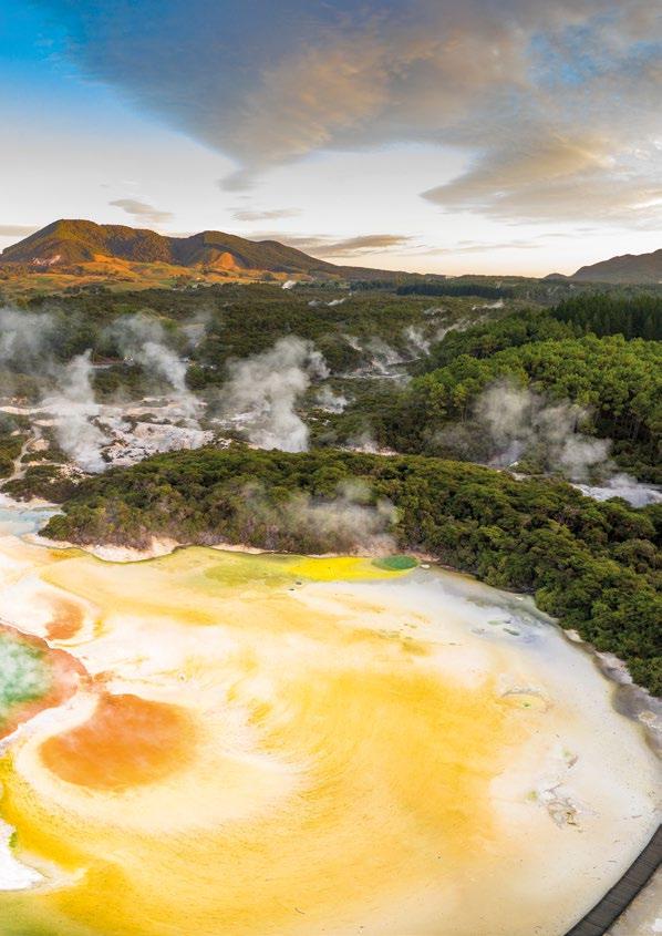 Mmm, lecker, oder ? Was hier in Waikato (Neuseeland) aussieht wie ein riesiger Teller Spiegelei mit Spinat ist in Wirklichkeit ein 18 Quadratkilometer großes sogenanntes Geothermalgebiet (Geothermie = Erdwärme) mit dem Namen „Wai-O-Tapu“ – in der maorischen Sprache „heiliges Wasser“. Es brodelt und dampft schon seit rund 900 Jahren ! Abhängig von den enthaltenen Mineralien leuchten die heißen Quellen in unterschiedlichen Farben: orange bei Antimon, weiß bei Siliziumdioxid und grün bei Schwefel. Der Schwefelwasserstoff hat jedoch einen nicht sehr appetitlichen Nebeneffekt: Es riecht nach faulen Eiern. waiotapu.co.nz