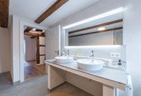 Worauf sind Sie ganz besonders stolz? Auf die beiden Bäder und das Treppenhaus. Die Bäder habe ich mit Sentimento 78 bearbeitet, sodass die Wände aussehen wie Baumrinde. Putz, Möbel, Fliesen – alles passt in den Räumen wunderbar zusammen. Im Treppenhaus war noch die alte Treppe drin. Ich habe es komplett geschliffen, gestrichen und die Treppenstufen neu belegt.