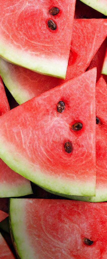 Mmm, Melonen! Süß, fruchtig und leicht verdaulich sind die dunkelroten Früchte und damit die ideale Erfrischung an heißen Tagen – als leckere Zutat im Obstsalat, als Smoothie, Sorbet oder pur. Botanisch gesehen sind Melonen übrigens Beeren, da sie aus einem einzigen Fruchtknoten entstehen und Samen enthalten.