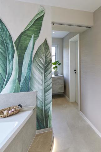 04 Aber bitte mit Besenstrich: Im Badezimmer sorgt eine Variante im Farbton Muschelkalk für Abwechslung