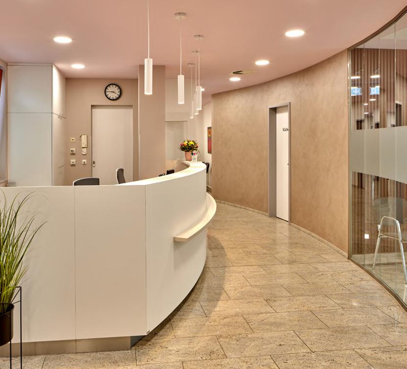 Alt und Neu so zu kombinieren, dass ein harmonisches Ganzes entsteht. Deshalb haben wir mit einer neuen und einer alten Technik gearbeitet: Betonoptik und Besenstrich. Beim alten Haus mit Erker und Satteldach haben wir mit Besenstrich Akzente gesetzt, der moderne quadratische Anbau ist in Betonoptik gestaltet. Beide Techniken finden sich auch innen wieder.
