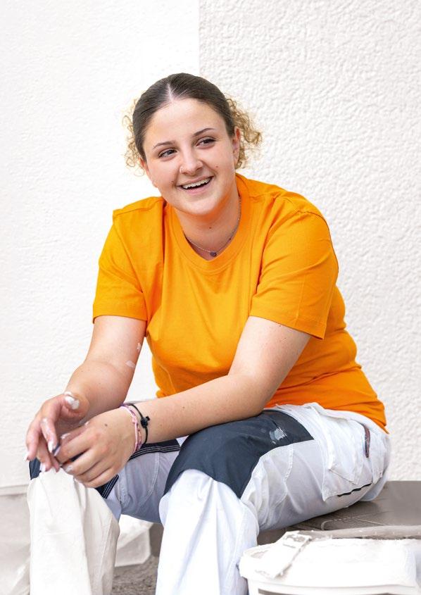trommel rühren und Nachwuchsinitiativen wie etwa „Deine Zukunft ist bunt“ nutzen. Drittens: Wichtig sei, so die Expertin, bei Aktionen mit Außenwirkung die eigene Vorbildfunktion zu nutzen. Habe ein Betrieb ein gemischtes Team, solle das sichtbar sein, findet auch Lena Rauch, 30. Die Malermeisterin ist Geschäftsführerin im Familienbetrieb und sehr präsent auf der Baustelle. „Vor allem die Kundschaft weiß weibliches Einfühlungsvermögen zu schätzen“, sagt sie. Ganz einfach sei ihr Aufstieg auch nicht gewesen, so als Tochter des Chefs, junge Meisterin und ambitionierte Chefin. „Die meisten Mitarbeiter kennen mich noch in Windeln. Aber bei uns gabs immer Gleichberechtigung. Mein Opa stellte schon in den 1980er-Jahren eine Azubine ein. Sein Motto war: Ob Männlein oder Weiblein – Hauptsache, der Mensch kann arbeiten.“ Probleme, Nachwuchs zu finden, hat Lena Rauch nicht – Toleranz ist die beste Werbung, gute Nachrichten sprechen sich rum.