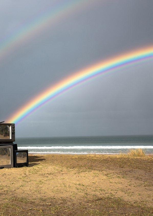 Abschalten statt einschalten ! Diese Pyramide aus Retro-Fernsehern an einem australischen Strand spielt ein ganz besonderes Live-Programm: Tagsüber spiegeln sich auf den Bildschirmen vorbeilaufende Joggerinnen, Spaziergänger und Verliebte, in den Abend- und Morgenstunden werden der Ozean, der weite Himmel und die Vogelwelt zum Hingucker der Installation „Revision“. „Anstatt die Fernsehnachrichten zu sehen, lädt dieses Projekt die Zuschauer ein, die Realität und Natur zu beobachten“, sagt die iranische Künstlerin Shirin Abedinirad über die ungewöhnliche Strandkunst, die wie viele ihrer Reflexionsprojekte dazu einlädt, die Realität neu wahrzunehmen. shirinabedinirad.com