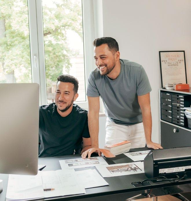 Die Brüder Christian und Andreas Singh (r.) sind beide Malermeister und führen eigenständige Firmen in bayrischen Nachbarorten. Eine ideale Konstellation, wie sie finden: Weil jeder sein eigener Chef ist, sie aber trotzdem häufig zusammenarbeiten – und jede Menge Spaß dabei haben. Mehr auf Seite 48