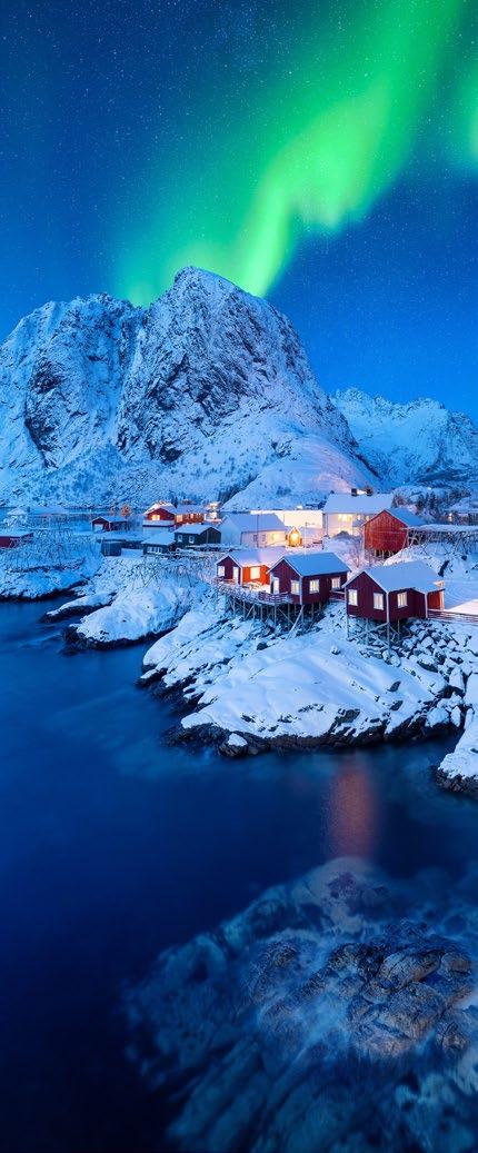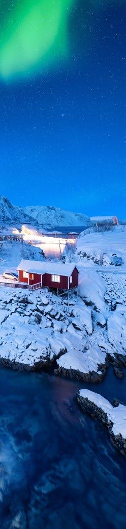 Himmel, ist das schön! Nordlichter, wissenschaftlich Aurora borealis genannt, wirken wie von Zauberhand gemalt – meist in strahlendem Grün, manchmal aber auch in Gelb, Blau oder Rot. Einer der beliebtesten Fotospots für das Phänomen in Norwegen ist das Dorf Hamnøy (Lofoten), weil es eine Bilderbuchkulisse bietet.