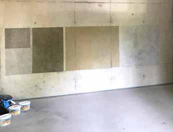 M. Plein: Optik und Haptik von Betonoberflächen variieren durch viele Einflussfaktoren sehr stark. Somit ist die Ober flächengestaltung mit einer Lasur, anders als bei deckenden Beschichtungssystemen, nicht eindeutig vorherzusagen. Großflächige Muster vor Ort zeigen alle Eigenschaften der Kombination aus Lasur und Beton – ermöglichen die direkte Wahrnehmung. Grate, Poren, Unebenheiten und alle Dinge,