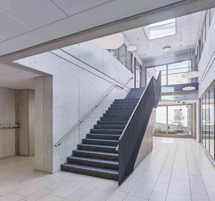 Dies ist eine schöne Überleitung zur Materialität sowie zum Einsatz bestimmter Oberflächen und Farben. Warum ist das Konzept – gerade für eine Schule – doch sehr reduziert?