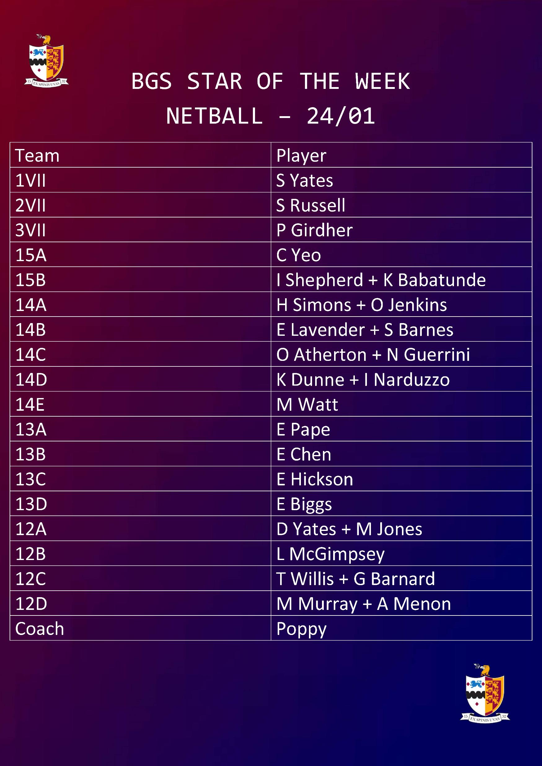 2-5s Girls’ Netball Kingswood 31/01 2s + 4s 11:30 3s + 5s 10:30 AWAY