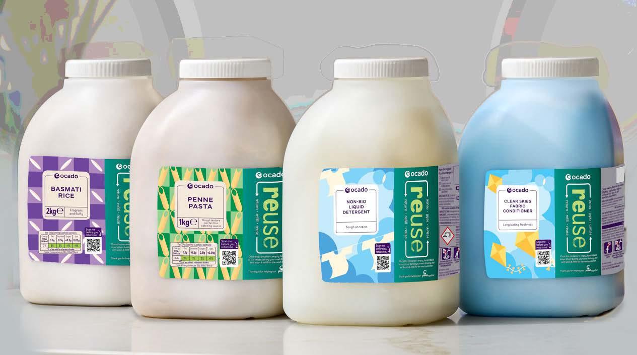 1. Ocado’s Reusable Packaging system - In August 2024, Ocado launched a trial offering everyday products - such as pasta and rice - in reusable packaging. Customers receive products in reusable containers, which are returned for cleaning and refilling, integrating seamlessly with Ocado’s existing delivery service. This effort seeks to minimise single-use plastic waste. The trial has now become the standard offer and Ocado are exploring expansion.25