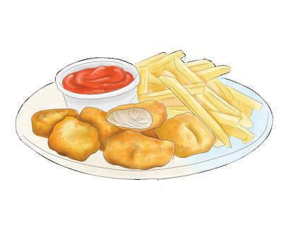 CHICKEN NUGGETS CON PAPAS A LA FRANCESA.
