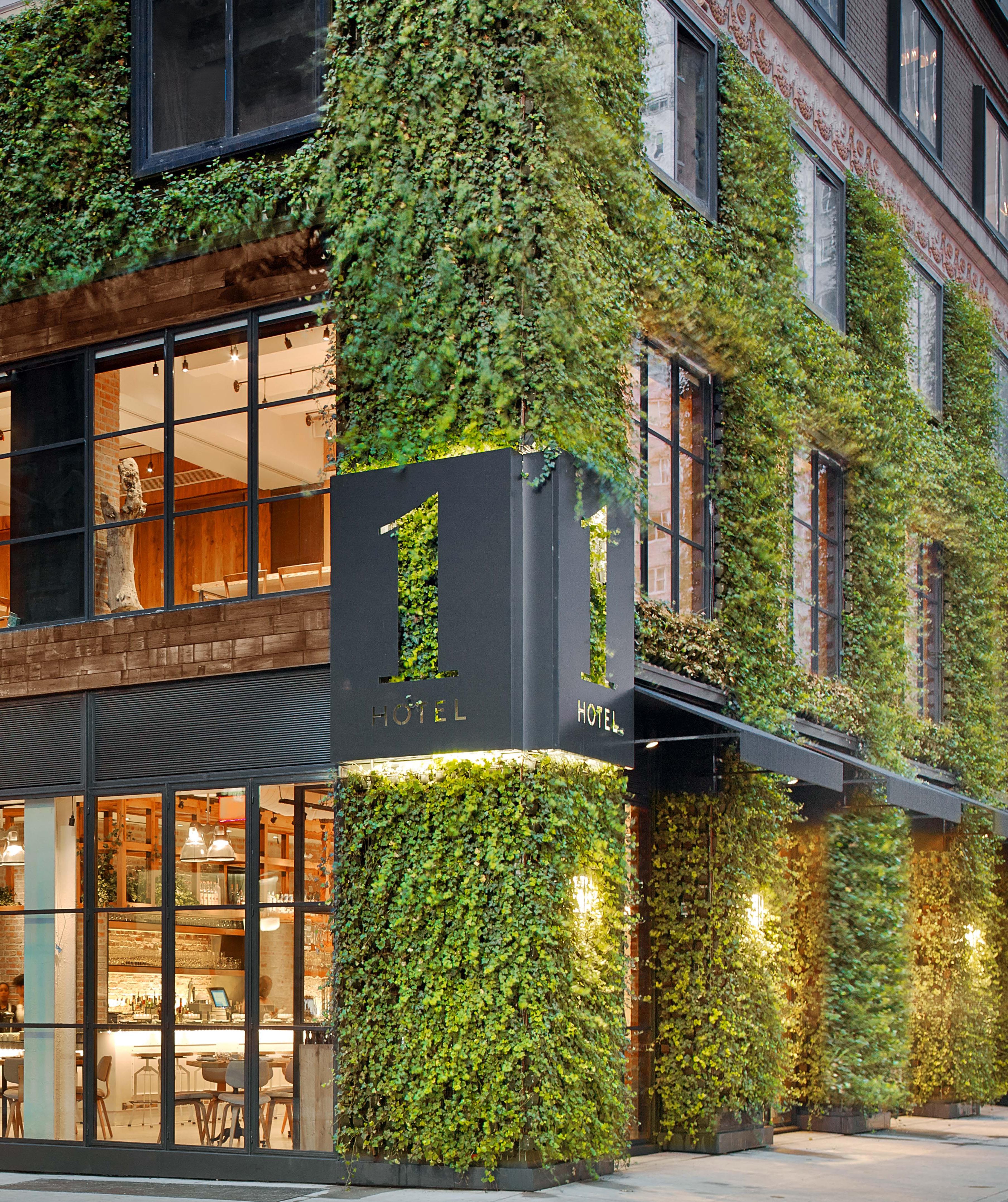 La marca 1 Hotels basa todo su diseño, construcción y operación en cinco pilares: impacto ambiental, apoyo, educación y participación, salud y bienestar, y responsabilidad en alimentos y bebidas. En 2020, la cadena 1 Hotels dirigió esfuerzos para incrementar la sustentabilidad y reducir el consumo de energía.