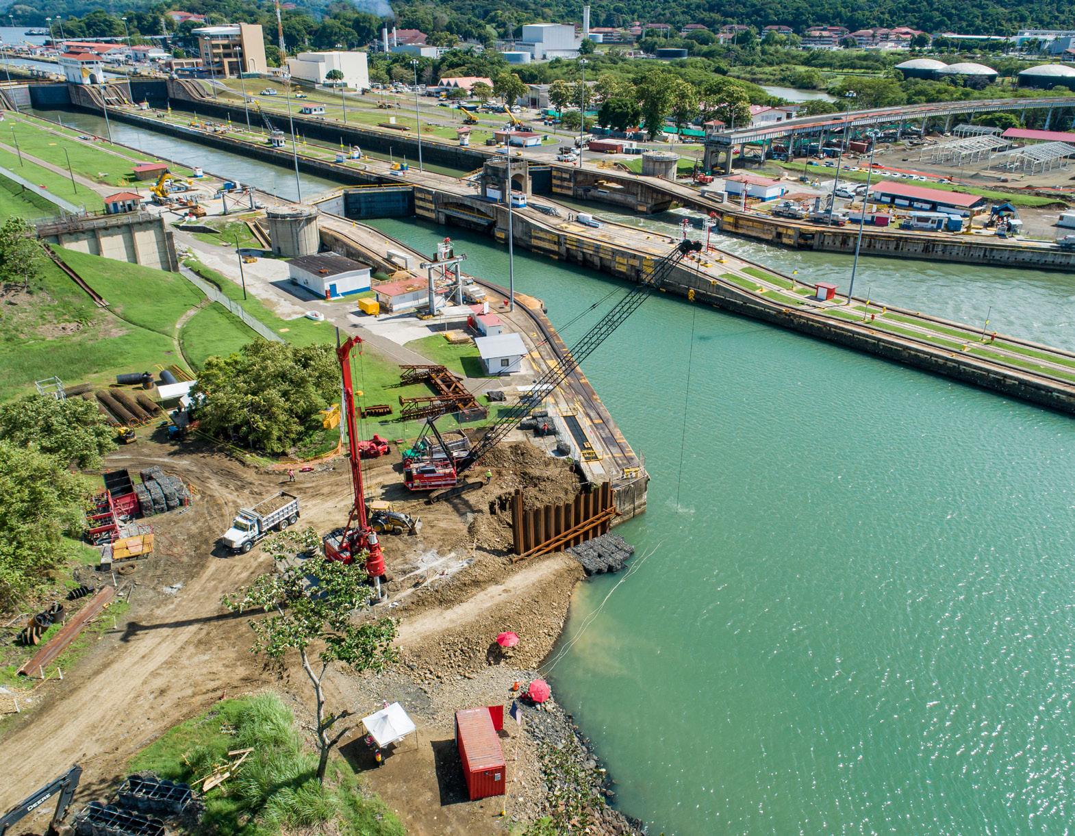 Pilotes y tablaestacas, Esclusas Miraflores del Canal de Panamá