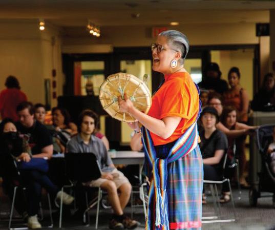 Nicole Joy-Fraser sang and drummed prior to a feast at Indigenous Peoples Awareness Week.