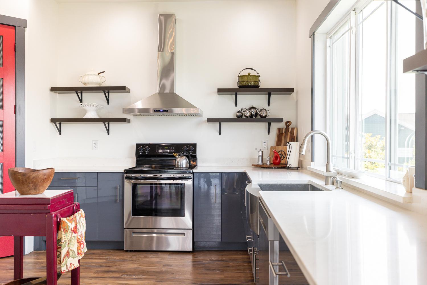 The sleek countertops and high-end appliances make cooking a delight, while the ample storage space ensures that all your culinary essentials are within easy reach.