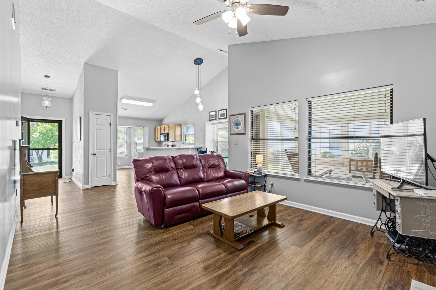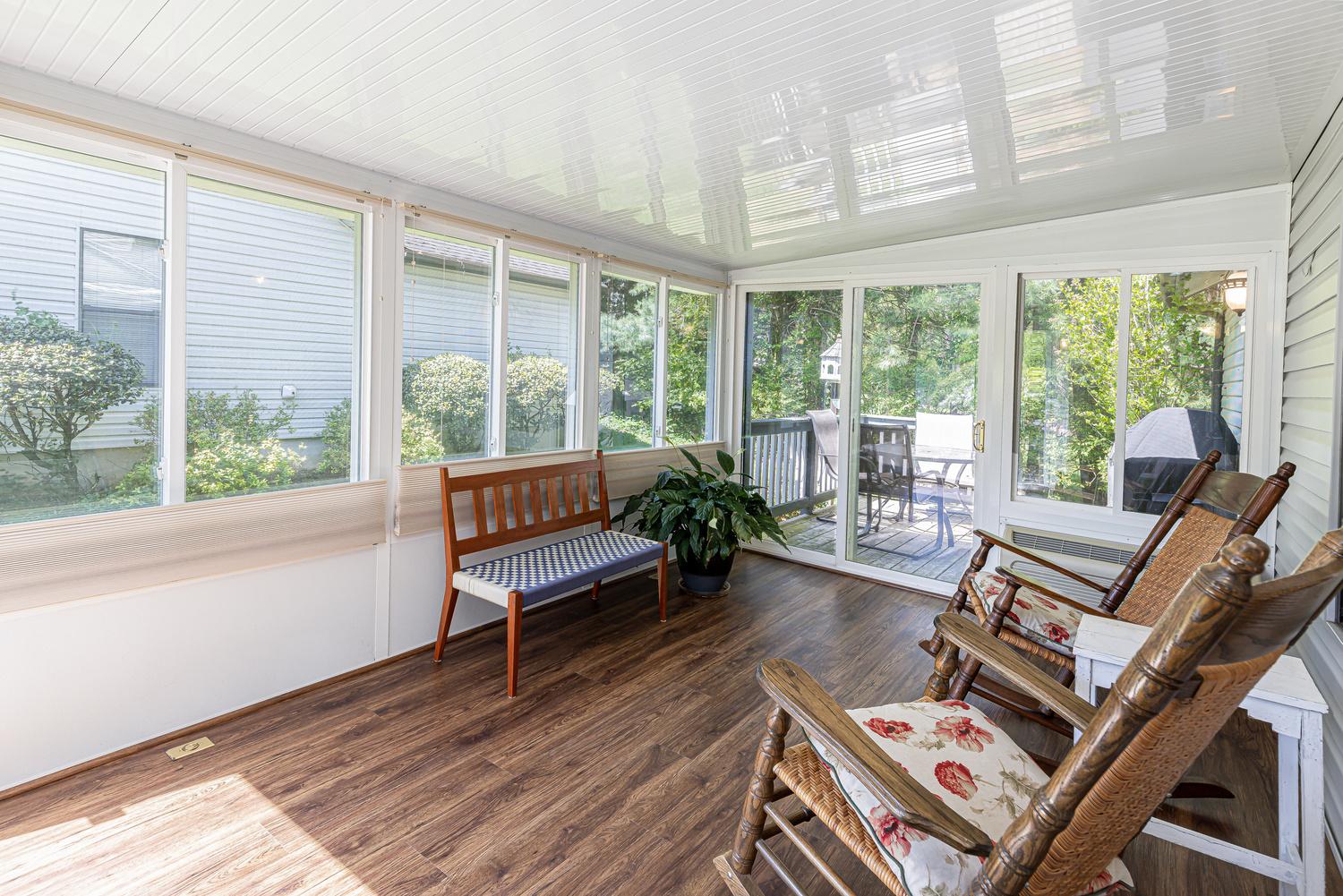 Enjoy an open and spacious living area with vaulted ceilings, providing ample natural light and plenty of room for relaxation or small get-togethers. An enclosed sun porch offers additional living space and the perfect spot to enjoy a morning cup of coffee.