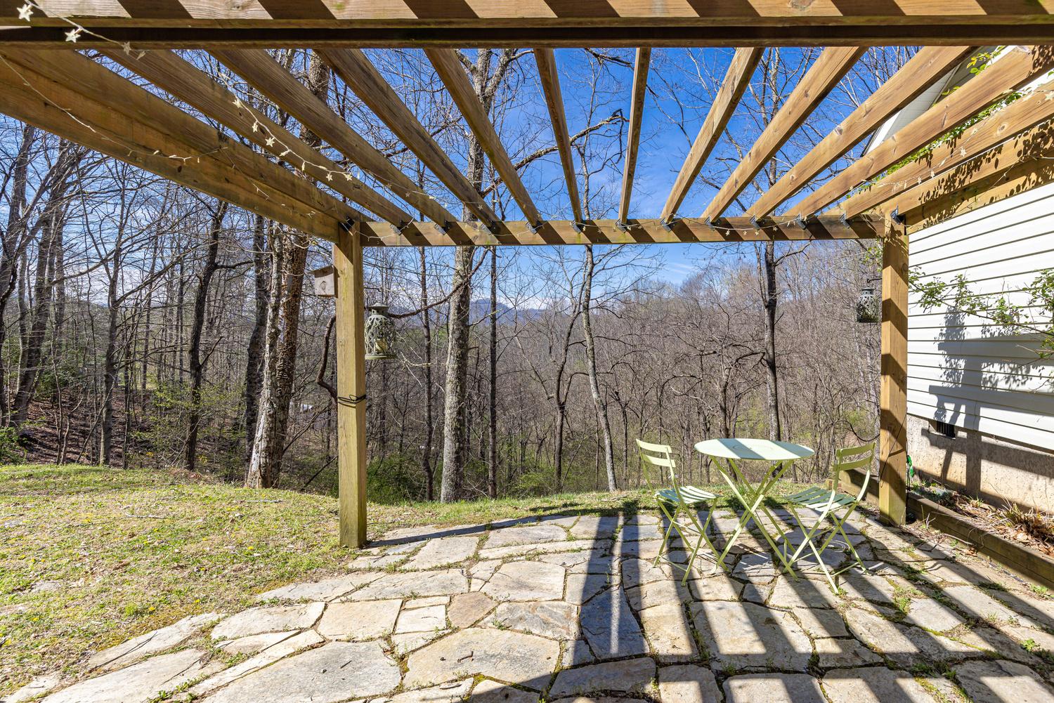Step outside onto the expansive covered deck and take in breathtaking mountain views. This outdoor space is perfect for relaxing and taking in the natural beauty that surrounds you. The deck is spacious and covered, providing shade on sunny days, and there's plenty of room for outdoor furniture and entertaining. The property also offers ample outdoor space for gardening or other activities, making it ideal for those who enjoy spending time outdoors.