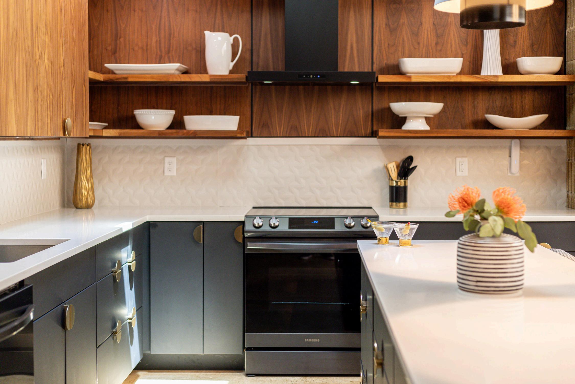 The Remington has been meticulously updated to blend its original mid-century aesthetic with modern conveniences. Chic color schemes, textured finishes, and warm touches create a moody, vibey atmosphere. The home now features contemporary amenities, ensuring comfort while maintaining its unique character. Every detail has been thoughtfully curated to enhance its historical charm and modern appeal.