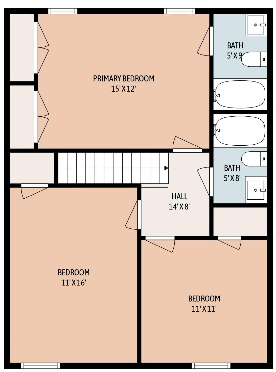 3 3 2 PRIMARY BEDROOM 15 X 12 ft Hardwood En-suite Bathroom BEDROOM 2 11 X 16 ft Hardwoo d BEDROOM 3 11 X 11 ft Hardwood Double Sided Closet SQUARE FOOT 1,555 sqft