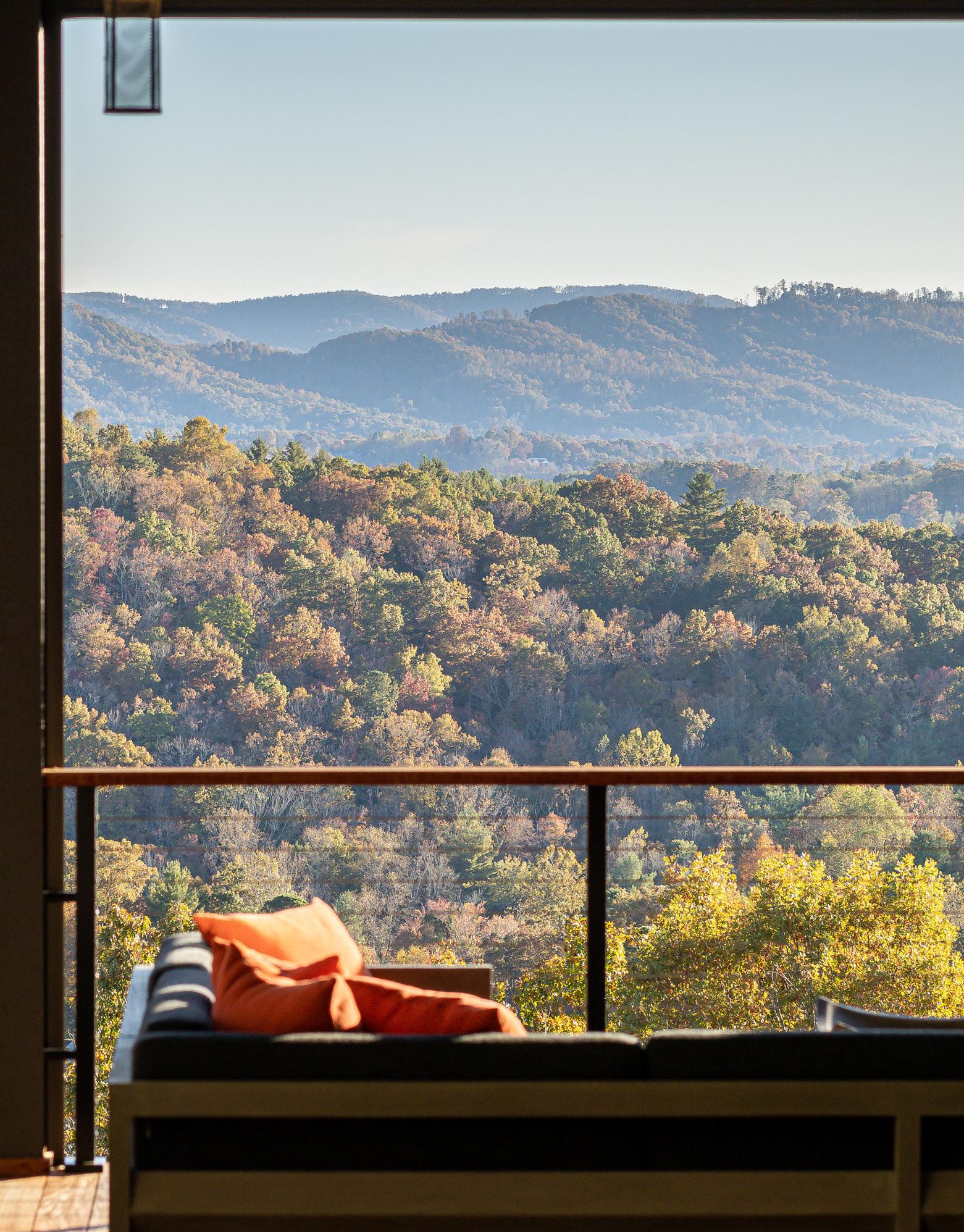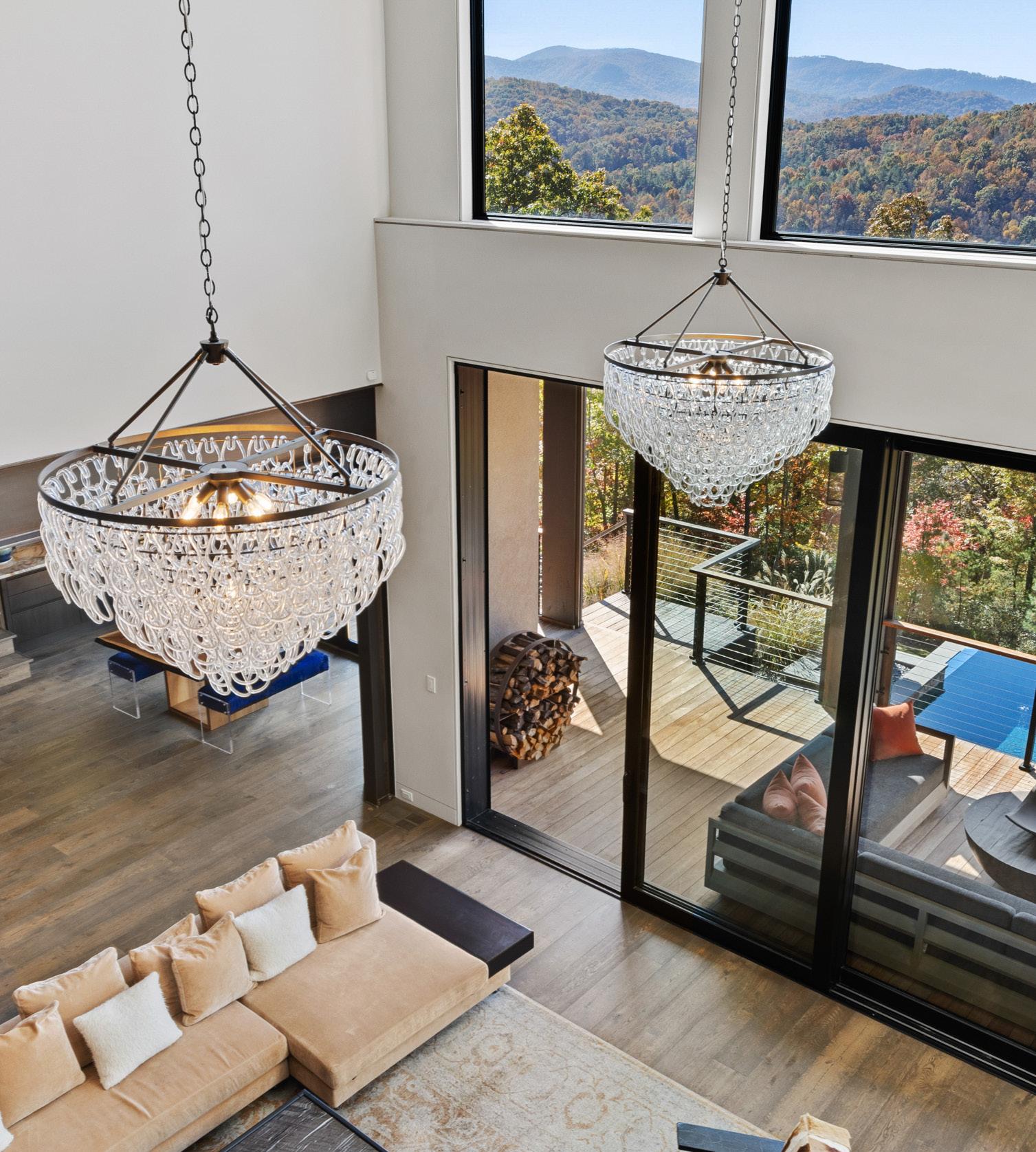 “ The first time I walked through the front door of Wild Wind Estate, I was engulfed by the mountain views. The wall of retractable glass doors allow for a seamless transition from indoor to outdoor living. I always find myself standing in the same spot on the deck, overlooking the pool and counting the layers upon layers of blue ridge vistas. In my many visits to the property, the views still leave me awestruck.