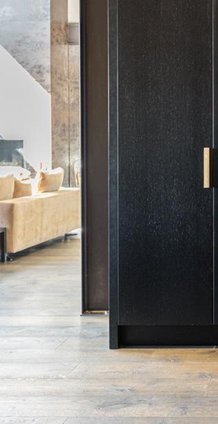 As you enter the private sanctuary, the Piquant midnight-blue walls, locallysourced stone fireplace mingle with soft textiles. The private balcony and wall of windows create a true sanctuary. The sizable primary bath features a barrel-vaulted ceiling, brushed White Oak vanities, private water closets and separate, wellappointed closets. Radiant heated flooring makes cool mountain mornings cozy, and sunrise-facing bath is perfectly positioned for you to welcome the day as you soak.