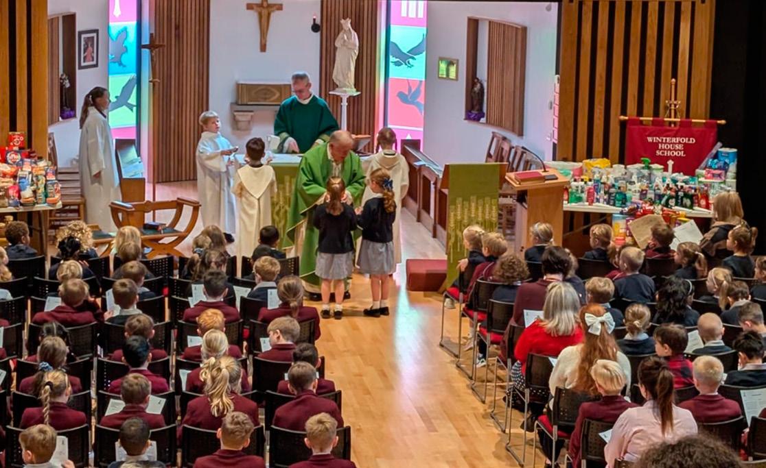 At Harvest time, our Spiritual Leaders guided the whole School in a joyful Harvest Mass, giving thanks for God’s blessings. The generosity shown in support of The Basement Project was overwhelming. Pupils visited the charity to deliver donations, learning about its mission to help local families and reflecting on the message that “each of us is a vital piece in the jigsaw of community.” During assembly, our newly formed Catholic