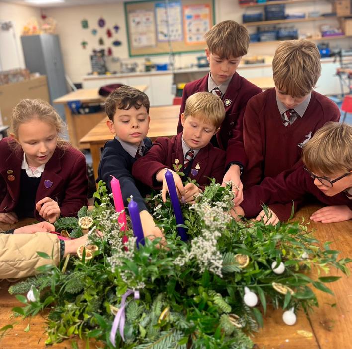 Spiritual Leaders were all involved in the annual event of wreath-making, under the kind guidance of Mrs Page. They all had a go at layering the different greenery filling in the gaps with shorter branches and sprigs topped off with other embellishments such as dried orange pieces and baubles.