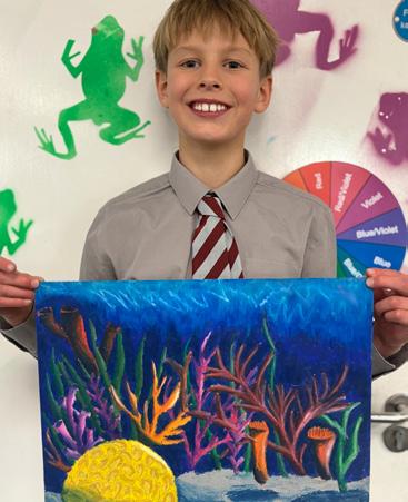 The Art Department has had a vibrant and productive term, with each year group exploring a different artist and medium. Year 3 created mixed-media jungle paintings inspired by Henri Rousseau, while Year 4 developed perspective landscapes in the style of David Hockney. Year 5 produced