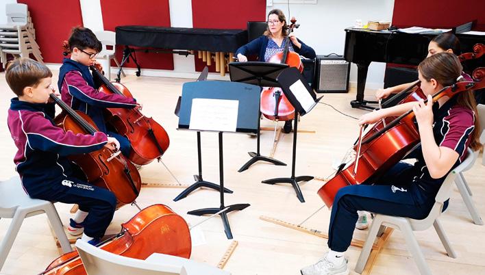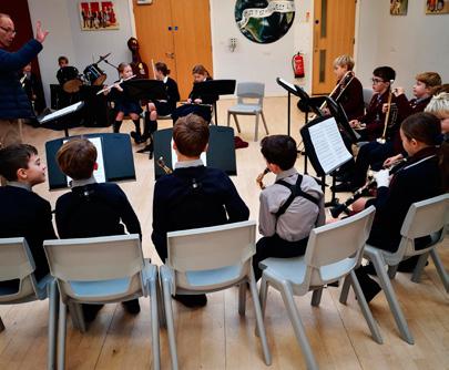 string players, music has filled every corner of Winterfold. Junior Band has given our trainee brass and wind players a chance to shine, while Senior Brass has been preparing for those big, memorable moments like Remembrance and Christmas carols. The orchestra continues to lead the way at whole-school Masses and is already looking forward to the Summer Concert. Adding a modern twist, our new pop band, Off Beats, has brought