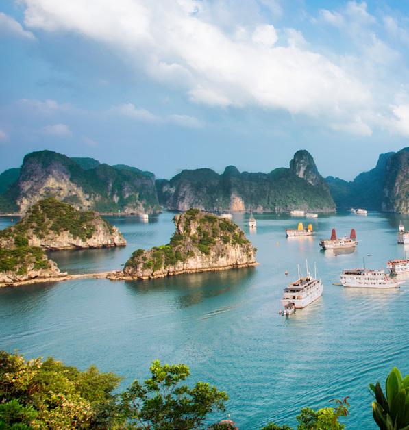 Blessed with a survival instinct that has seen it through many generations of conflict and upheaval, Vietnam evokes an overwhelming sense of optimism. While visiting Hanoi and Ho Chi Minh City, you will see mopeds zigzagging down city streets and animated vendors at lively markets. Just beyond the city limits, however, you will get a glimpse into another era, a place where water buffalo roam; women in pastel-coloured tunics pedal their bicycles down dusty paths; and children wave to you from wooden houses on bamboo stilts. These experiences add to the many colourful contrasts of Vietnam.